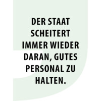 Andere Aspekte wie die Unzufriedenheit mit der Beförderungssituation etwa im Vergleich zur Betriebsprüfung, mögen ebenfalls eine Rolle gespielt haben. Damit stehen Radermacher und Höfer-Grosjean nicht allein da. Berater, die wie die beiden aus dem Staatsdienst gewechselt sind, berichten von schlechter Führungskultur, mangelnder Wertschätzung und Ausstattung. Auch starre Hierarchien und Regelungen sind immer wieder ein Thema. Der Staat, so scheint es, scheitert immer wieder daran, gutes Personal zu halten.