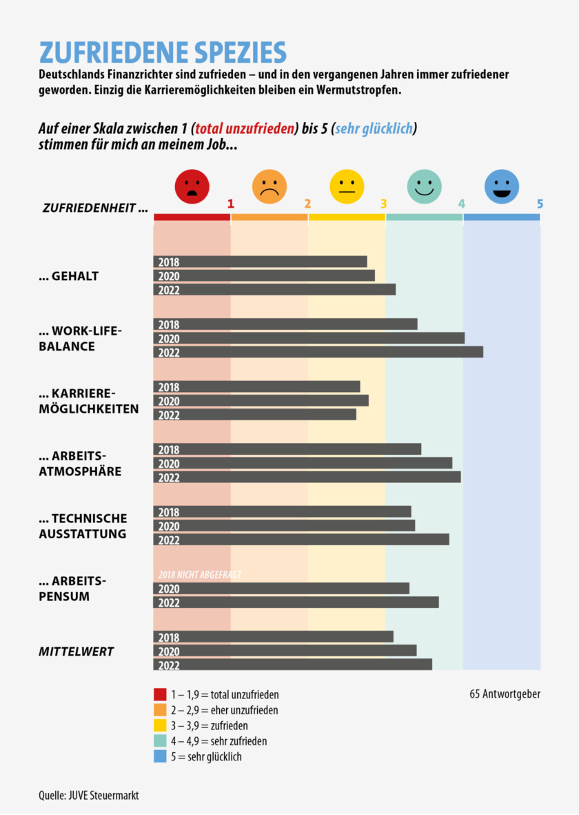 Dass die Verfahren aber in der Tat länger dauern als früher, und dass es deswegen trotz Rückgang der Verfahrensanzahl nicht zu weniger Arbeit an den Finanzgerichten kommt, hat einen banalen Grund: Die Verfahren sind in den vergangenen Jahren komplexer geworden. Das bestätigen sowohl Berater als auch die Finanzrichter in der Umfrage. „Es geht häufig um höhere Summen, die Betriebsprüfungen sind komplexer geworden. Entsprechend sind auch die Verfahren vielschichtiger und komplizierter“, sagt etwa FG-Richter Krebbers. Der Zufriedenheit der Finanzrichter tut dieser Entwicklung indes keinen Abbruch. Und wenn die Gerichte noch an einigen Stellschrauben drehen, sollte der Beruf für das Gros der Richter auch in Zukunft ein Traumjob sein und bleiben.